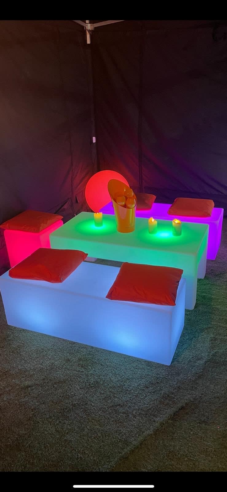 Transform your event space, patio or party into a Ibiza style vibe, of light and style with our LED Rectangular Table. This innovative piece is more than just furniture; it's a statement of contemporary elegance and functionality. The LED Rectangular Table brings a pop of color and customizable lighting to any setting.