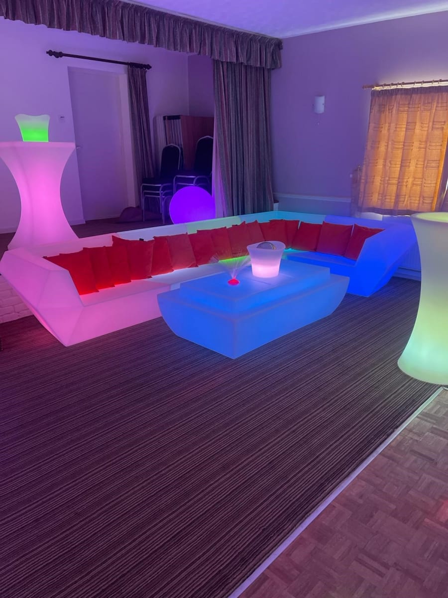 ✨ Looking to elevate your event or living area with a touch of modern elegance? Our LED Extra Large L Shape Sofa & Table offers just that and more. This striking seating arrangement, with its sleek design and brilliant LED features, is perfect for creating unforgettable moments at any gathering.