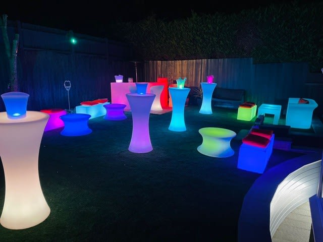 Our LED Poseur Tables are not just visually stunning; they are the ultimate versatile solution for any event. Ideal for birthday parties, anniversaries, charity events, and more, these tables create a mesmerizing focal point, making them a must-have in your party arsenal. Whether indoors or outdoors, these tables provide ample space for guests to place their drinks and mingle comfortably, enhancing the overall ambiance.